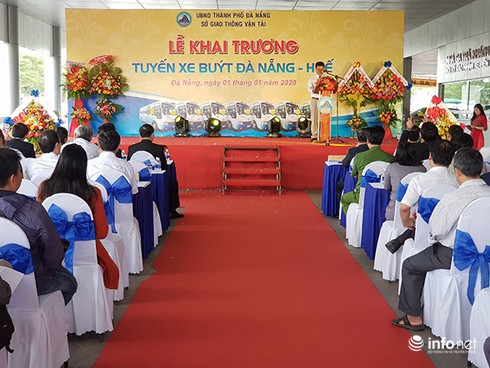 Lễ khai trương tuyến xe buýt liên tỉnh liền kề Đà Nẵng - Huế tổ chức tại Bến xe trung tâm TP Đà Nẵng sáng 1/1/2020 (Ảnh: HC) |