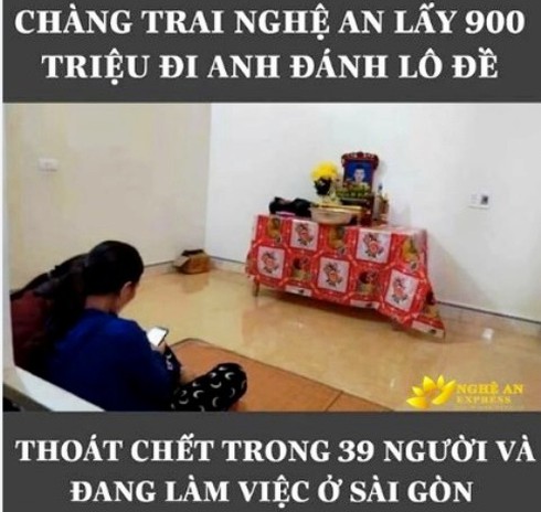 Ngày 3/11, trên một số trang mạng xã hội Facebook đăng tải thông tin về “chàng trai Nghệ An lấy 900 triệu đồng đi Anh để đánh lô đề”. Kèm theo nội dung là hình ảnh của một gia đình đang lập bàn thờ vọng vì nghĩ rằng, con của họ là một trong 39 người chết trong thùng xe containter ở Anh.