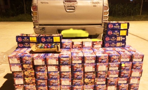 Tại cơ quan điều tra, bước đầu hai đối tượng khai nhận đã thuê xe bán tải đi vào tỉnh Quảng Nam để vận chuyển pháo về Nghệ An tiêu thụ.