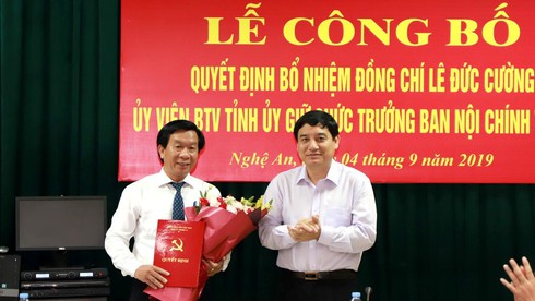 Chiều 4/9, Bí thư Tỉnh ủy Nghệ An Nguyễn Đắc Vinh đã trao quyết định của Ban Thường vụ Tỉnh ủy về việc điều động và phân công ông Lê Đức Cường - Chánh văn phòng UBND tỉnh đến nhận công tác tại Ban Nội chính Tỉnh ủy và giữ chức Trưởng ban Nội chính Tỉnh ủy Nghệ An.
