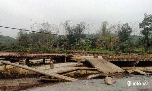 Đến năm 2009 mưa lũ xói trôi mất đường dẫn, huyện xin kinh phí khắc phục bão lũ đã sửa chữa đường dẫn đó, đến năm 2012 lại trôi tiếp phần cũ (2 nhịp cầu - PV) nên phải sửa lại.