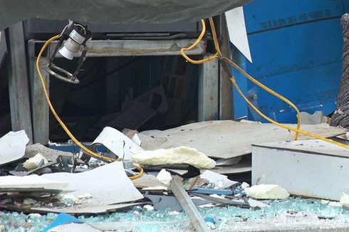 Vụ nổ làm phần kính buồng đặt cây ATM vỡ vụn, bắn xa hơn 30 mét, phần cây ATM hư hỏng gần như hoàn toàn. Phòng bảo vệ đặt cạnh đó rung chuyển.