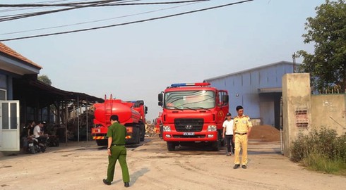 Nhận được tin báo, chính quyền địa phương, lực lượng PCCC cùng hàng trăm người dân địa phương nhanh chóng có mặt để dập lửa, hỗ trợ doanh nghiệp đưa đồ đạc ra phía bên ngoài.