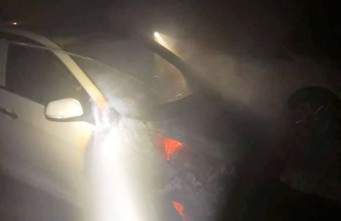 Đám cháy xuất phát từ chiếc xe Kia Moning để dưới khu vực đường hầm. (Ảnh:Cảnh sát PCCC) |