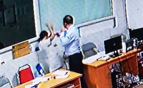 Bác sỹ Minh bị người đàn ông hành hung. (Ảnh cắt từ Camera an ninh BV) |