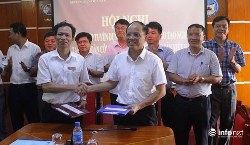 Ông Đặng Cao Thắng – PGĐ Sở LĐTB&XH Nghệ An và đại diện Trường Cao đẳng Than Khoáng sản Việt Nam ký kết biên bản ghi nhớ phối hợp tuyển dụng lao động Nghệ An |