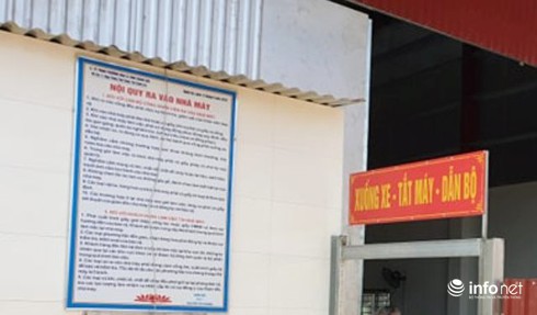 Công ty đặt bảng nội quy ra vào, với dòng chữ "Xuống xe, tắt máy, dẫn bộ" ngay ở đầu đường. |