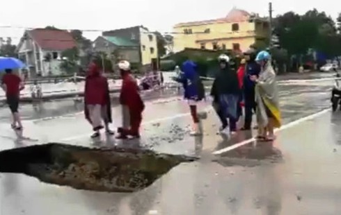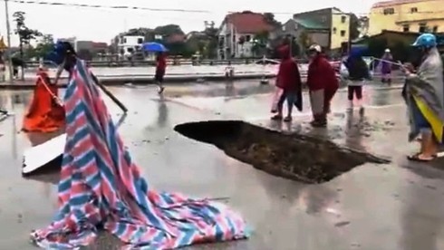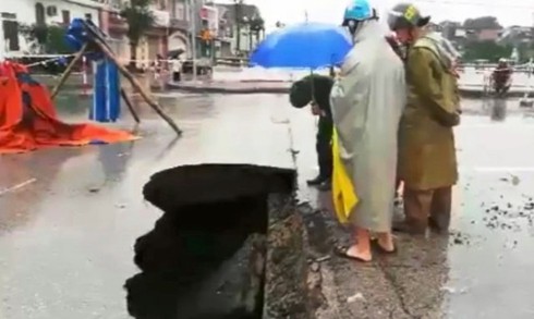 Đặc biệt, tại mặt đường Lê Viết Thuật (TP Vinh), sát mép cầu Bưu Điện bất ngờ xuất hiện hố sụt sâu hơn 1m, rộng 2m và dài 3m.
