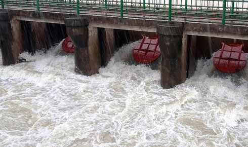 Các trạm bơm hoạt động hết công suất để tiêu úng. |