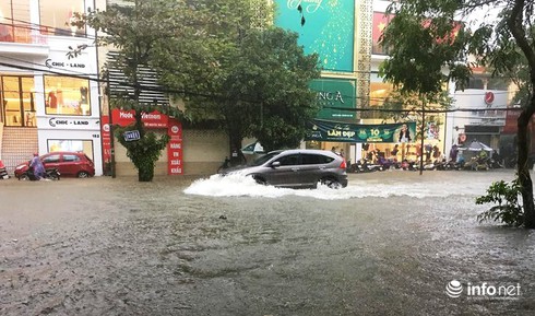Mưa lớn trong nhiều giờ đồng hồ khiến các tuyến đường ở trung tâm TP Vinh như Đại lộ V.Lê Nin, Nguyễn Thị Minh Khai, Đặng Thái Thân, Lê Hồng Phong, Quang Trung, Hồ Tùng Mậu… ngập sâu trong nước từ 30 - 50cm, giao thông tê liệt.