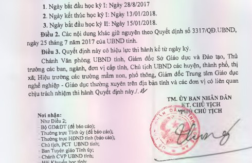 Quyết định về kế hoạch, thời gian năm học mới 2017 - 2018 của tỉnh Nghệ An. |