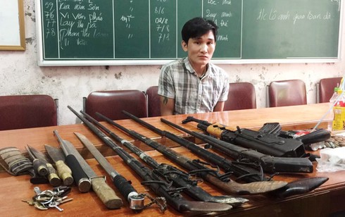 Đối tượng Lương Văn Thăn cùng "kho" vũ khí nóng tại cơ quan công an. |
