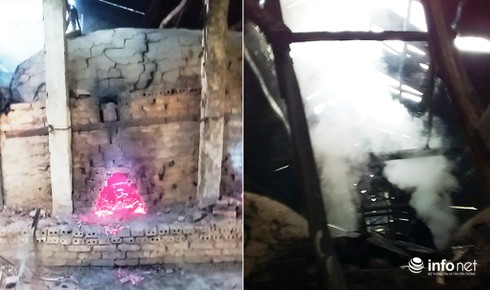 Lò đốt than thủ công, khói bụi bay mù mịt. |
