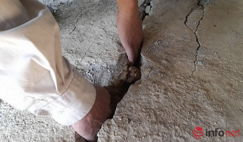 Vết nứt kéo dài hàng trăm mét, rộng từ 10-20cm, độ sâu từ 80-200cm và có dấu hiệu ngày càng rộng hơn.
