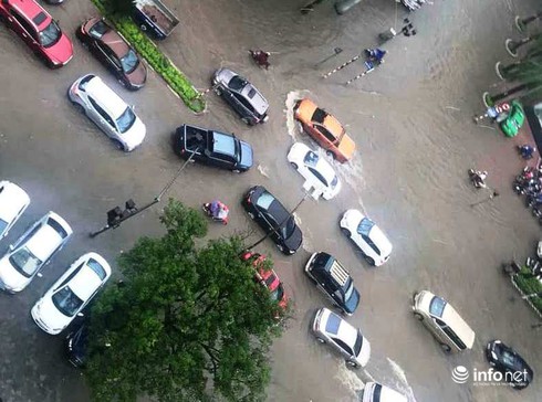 Mưa lớn khiến nhiều tuyến đường ở TP Vinh bị ngập nặng. |