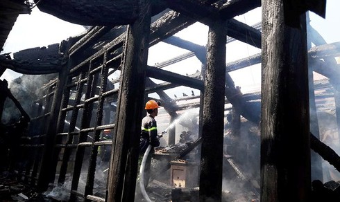 Ngôi đền được làm bằng gỗ nên chỉ trong chốc lát đã bị cháy rụi. |