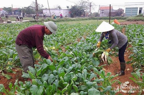 Nông dân Quỳnh Bảng (Quỳnh Lưu) vào mùa thu hoạch củ cải trắng. |