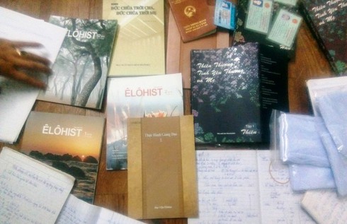 Tang vật liên quan đến việc tuyên truyền Hội thánh Đức Chúa trời bị thu giữ tại một căn hộ chung cư ở TP Vinh, Nghệ An. |