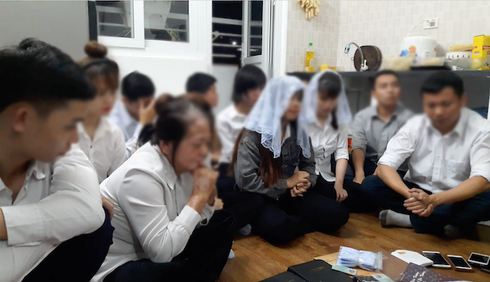 12 người đang tổ chức sinh hoạt "Hội thánh Đức Chúa trời" thì bị cảnh sát phát hiện. |