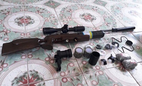 Khẩu súng hơi cùng 2kg đạn chì không rõ nguồn gốc. |