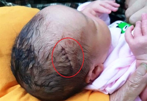 Nghệ An: Sau mổ đẻ, bé trai phải khâu 6 mũi trên đầu