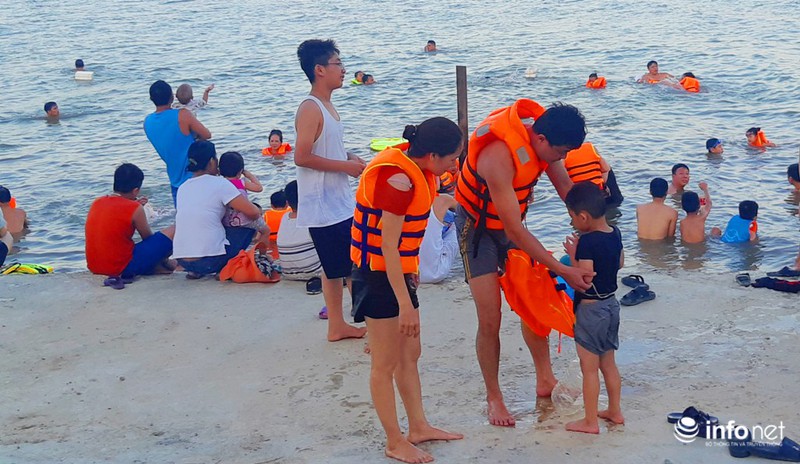Đa số người dân đều sử dụng áo phao khi tắm để đảm bảo an toàn. |