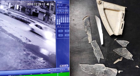 Hình ảnh chiếc xe ô tô nghi vấn gây tai nạn và một số mảnh vỡ tại hiện trường vụ tai nạn. |