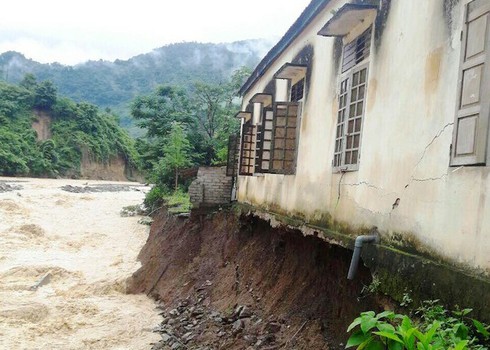 Điểm trường Tiểu học Mường Ải, huyện Kỳ Sơn bị sạt lở nghiêm trọng. |