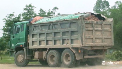Khi PV hỏi về số lượng đất được vận chuyển đi đâu thì ông Tú khẳng định đất được vận chuyển đổ ở bãi thải ở địa bàn của xã Nhân Sơn (huyện Đô Lương).