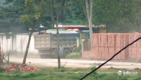 Ngày 12/3, có mặt trực tiếp tại đập Me, hàng chục chiếc xe tải lớn, nhỏ tấp nập vào công trình để “ăn đất” rồi vận chuyển vào Xí nghiệp gạch Tuy nen (đóng tại địa bàn xã Nhân Sơn, huyện Đô Lương) cách đó khoảng hơn 4km để tập kết.
