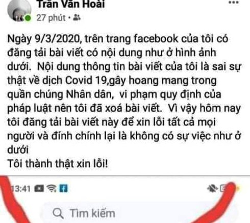 Làm việc với cơ quan Công an, Hoài đã thừa nhận hành vi sai trái của mình, đã tự gỡ bài viết và công khai xin lỗi trên trang facebook.