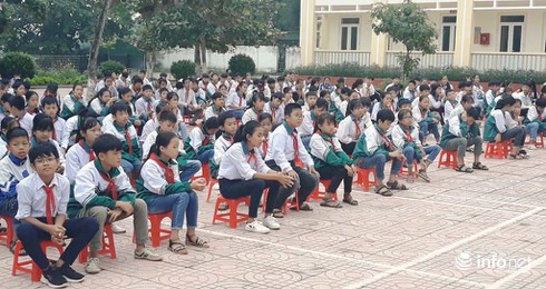 Sáng 4/11, tại buổi lễ chào cờ đầu tuần, Ban giám hiệu Trường THCS xã Thanh Lĩnh, huyện Thanh Chương (Nghệ An) đã tổ chức tuyên dương 2 em học sinh Nguyễn Thế Đan và em Nguyễn Thị Hoài Linh (học sinh lớp 7B) vì đã có hành động đẹp nhặt được của rơi, trả lại cho người đánh mất.