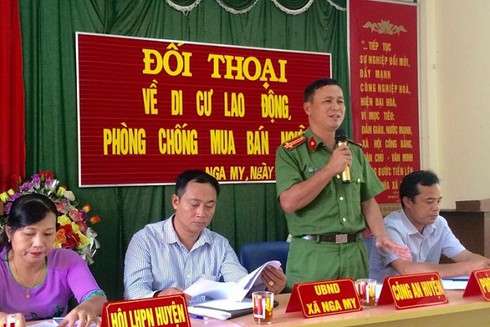 Và mới đây, Công an huyện Nghĩa Đàn phối hợp với Hội LHPN huyện tổ chức thực hiện hoạt động đối thoại chính sách về di cư an toàn và phòng chống mua bán người tại xã Nghĩa Trung.