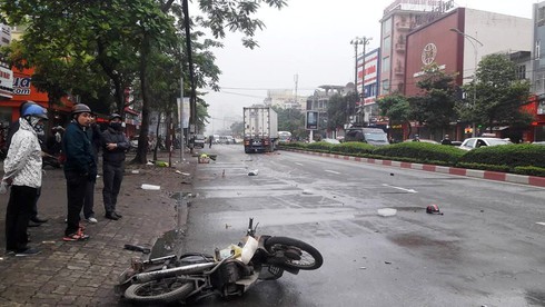 Tại hiện trường, nhiều mảnh vỡ của chiếc xe máy bay tung tóe trên mặt đường.
