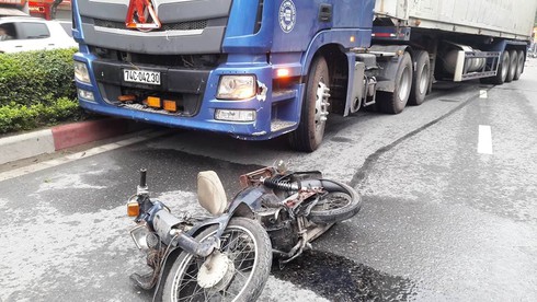Cú đâm mạnh khiến ông P. và xe máy bị kéo lê hàng chục mét sang phần đường ngược chiều. Do mất lái, chiếc xe container tiếp tục va chạm với chiếc xe máy của người phụ nữ, sau đó chạy thêm một đoạn khoảng 50m mới dừng lại.
