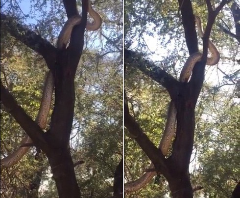 Nghe động, ngẩng lên thấy trăn khổng lồ "kinh dị" trên đầu