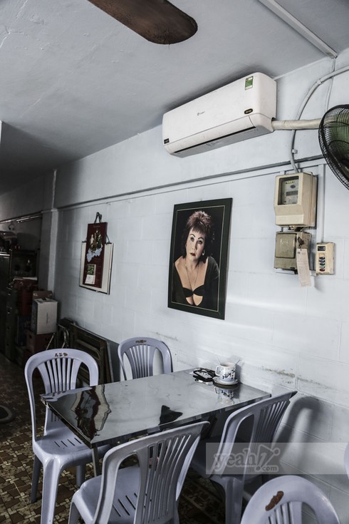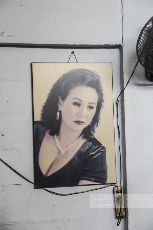 Căn nhà nhỏ chỉ có 3 gian, 1 phòng ngủ, một phòng ngoài và một căn bếp chật hẹp. Phòng khách đặt vỏn vẹn 4 cái bàn, trên tường còn treo bức ảnh của nữ nghệ sĩ Hoàng Lan thời còn son sắt.