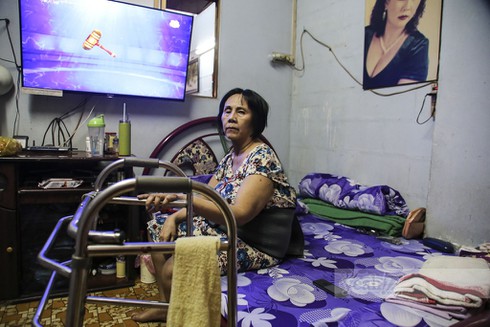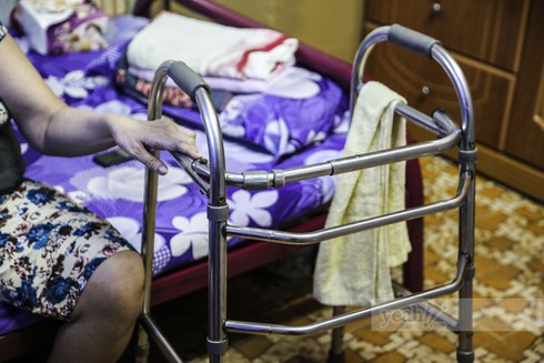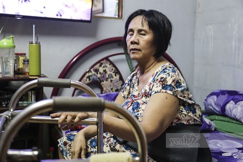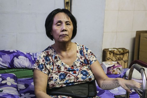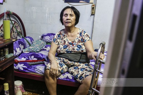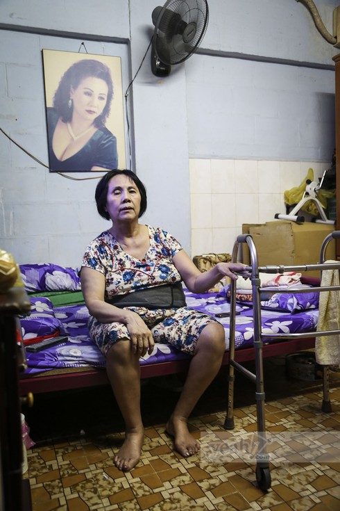 Một phòng ngủ với 4 bức tường hẹp, rộng vỏn vẹn vài mét vuông. Cô ngồi đó, trên chiếc giường cũ kỹ, bụng nịt một dây đai cố định. Người chị em chăm sóc cho nữ nghệ sĩ Hoàng Lan chia sẻ nếu không có dây đai đó, cô gần như không ngồi được.