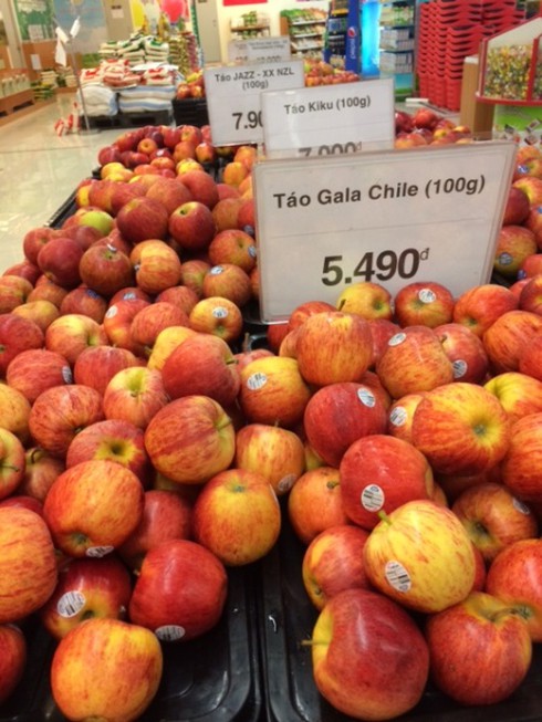 Táo Gala Chile tại Lotte Mart có lúc giá chỉ 54.000 đồng/kg, rẻ hơn táo táo Trung Quốc bán tại các chợ lẻ. Ảnh: Minh Thư |