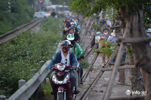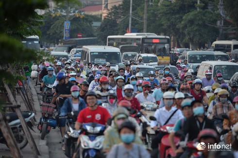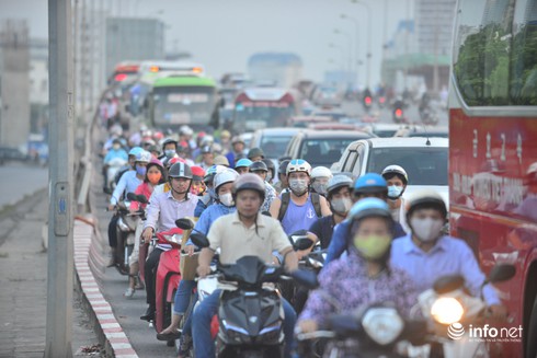 Ghi nhận của PV tại điểm nút giao Pháp Vân lúc 19h30, lượng người và xe vẫn đông đúc gây tắc nghẽn ở cả hai chiều.