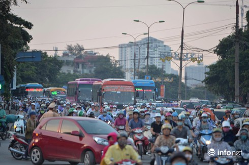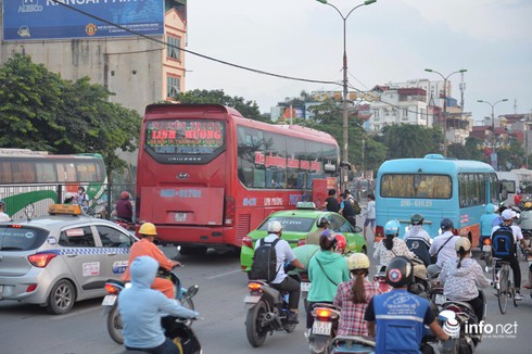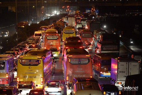 Khoảng 16h cùng ngày, cảnh tượng ùn tắc xảy ra ở khu vực cửa ngõ thành phố kéo dài từ đầu cầu vượt Mai Dịch cho tới ngã ba Phạm Văn Đồng - Hoàng Quốc Việt khiến việc lưu thông qua khu vực này trở nên khó khăn. Do lượng lớn xe khách xuất bến cùng lúc, cùng với đó là những người tự chủ đi xe máy về quê với những khu vực cận Hà Nội nên đoạn đường bị tắc trong thời gian dài. Anh Việt (hành khách bắt xe về Quảng Ninh) cho biết: "Tôi đã đợi ở đây gần 1 tiếng rồi nhưng không thể đón được xe. Trước đó, tôi có gọi điện đặt chỗ và được nhà xe hẹn đợi ở đây từ 15h30 nhưng giờ đã là 16h20 mà xe vẫn chưa ra tới nơi".
