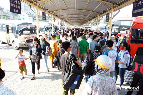 Chiều 1/9, có mặt tại 2 bến xe trọng điểm của Thành phố là bến xe Mỹ Đình và bến xe Giáp Bát, theo quan sát của PV các bến xe đều rơi vào tình trạng chật kín hành khách.