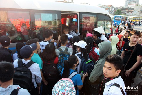 Cảnh tượng chen lấn xô đẩy để lên xe tại bến Giáp Bát, ai cũng mong sớm tìm được chỗ để về kịp nhà dịp nghỉ lễ 2/9. |