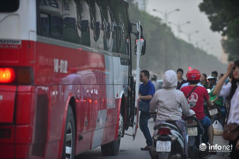 Tranh thủ việc tắc đường, xe di chuyển chậm, nhiều nhà xe vẫn ngang nhiên bắt khách trên đoạn đường Phạm Văn Đồng, Giải Phóng tại các bến cóc cụ thể là bến cóc Kim Đồng, Đại học Ngoại Ngữ... đây là những bến cóc đã được xử lý từ lâu nhưng hiện tượng bắt khách dọc những tuyến phố này vẫn xảy ra.