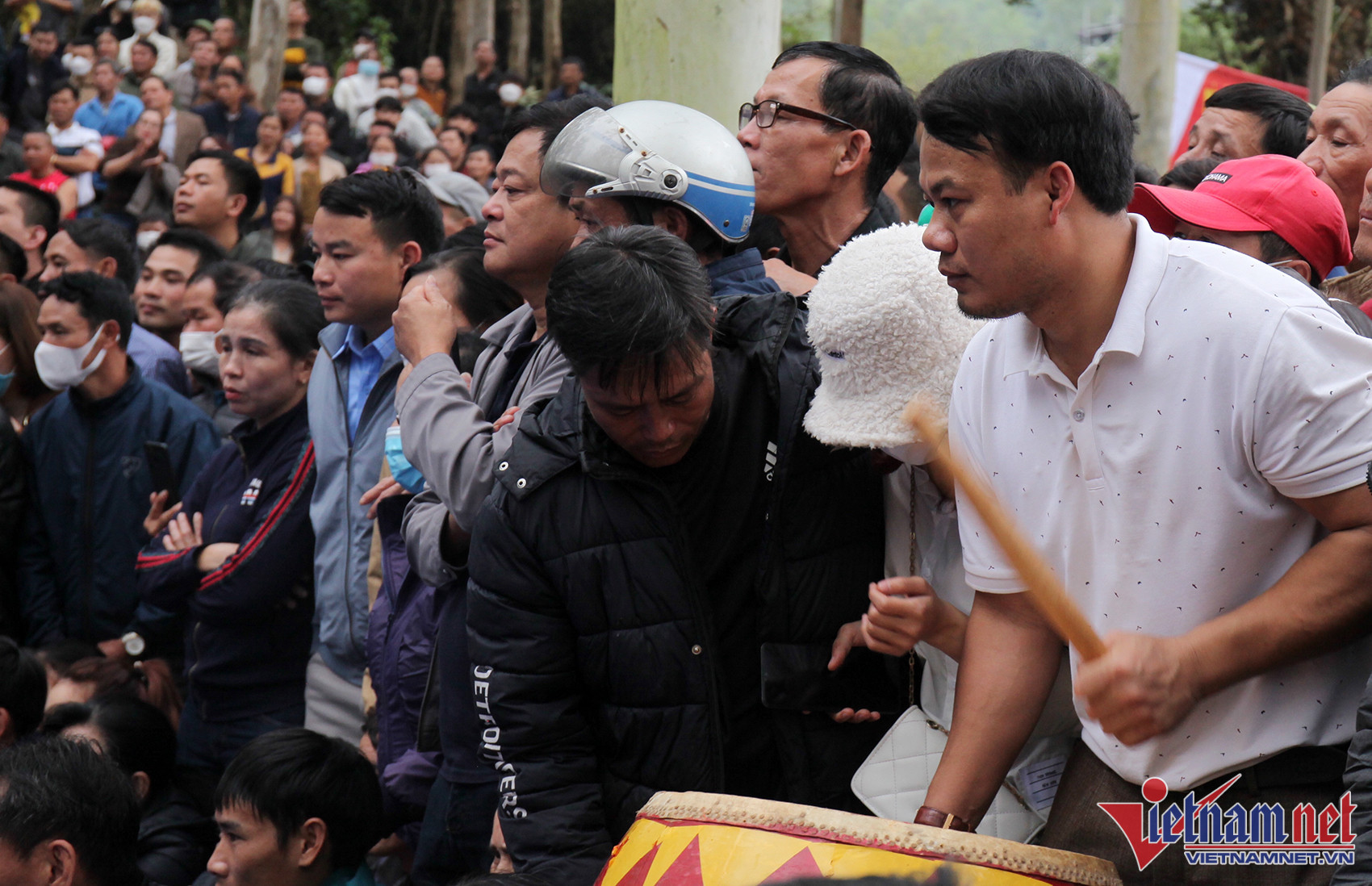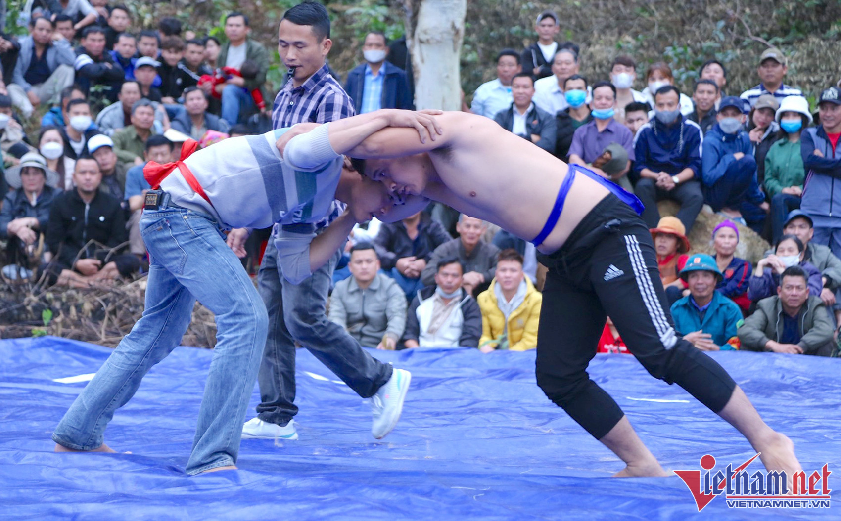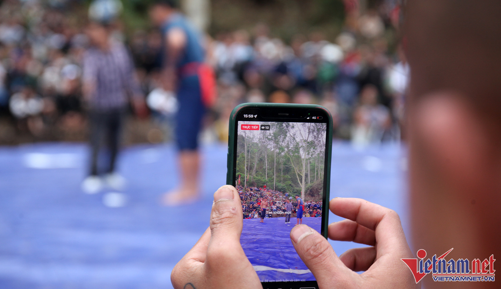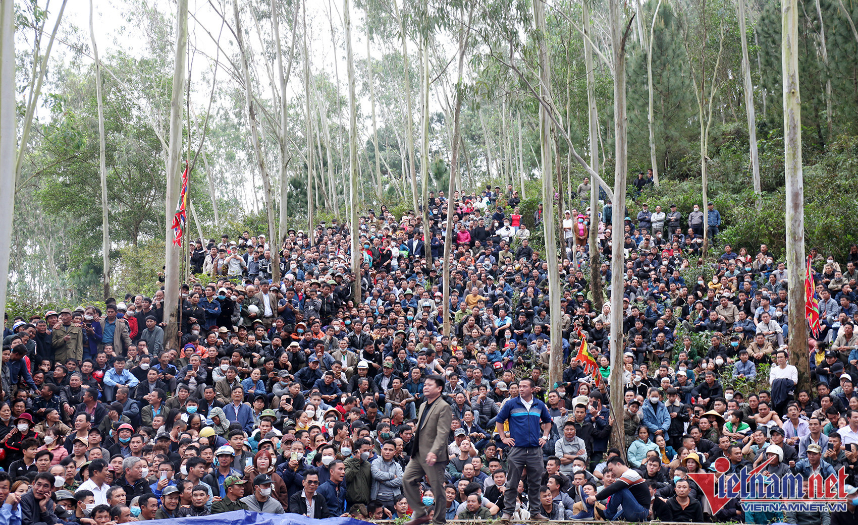 Nghìn người vây kín chân núi hò reo cổ vũ màn tranh tài trên sới vật