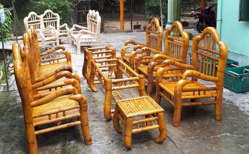 Theo ông Chánh, mỗi một bộ bàn ghế mất một tháng để hoàn thành, đó là chưa kể tốn rất nhiều thời gian để đi tìm những gốc tre có độ cong, cân xứng với nhau.