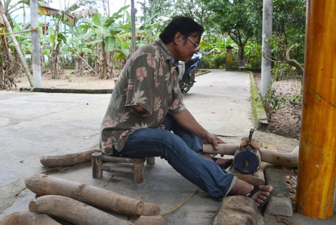“Lúc mới bắt tay vào làm, cứ vài ngày tôi lại chở cả xe bò toàn gốc tre về chất trong nhà. Nhiều người thấy vậy nói tôi bị điên…”, ông Chánh thuật lại và cho hay, những gốc tre chở về, ông mang đi ngâm bùn non 3 tháng để không bị mối mọt ăn.