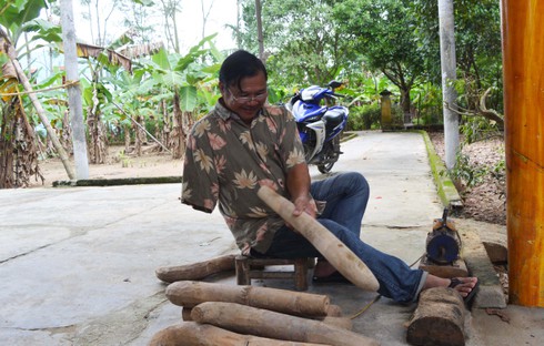 Sau chuỗi ngày mưa gió giữa tháng 10, ngôi nhà bên dòng sông Thu Bồn ở thôn Hanh Đông, xã Đại Thạnh, huyện Đại Lộc, tỉnh Quảng Nam lại vang lên tiếng đục đẽo quen thuộc của ông Phan Văn Chánh (56 tuổi).