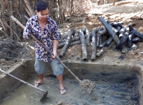 Gốc tre được ông Chánh ngâm bùn non chống mối mọt (Ảnh: NVCC) |