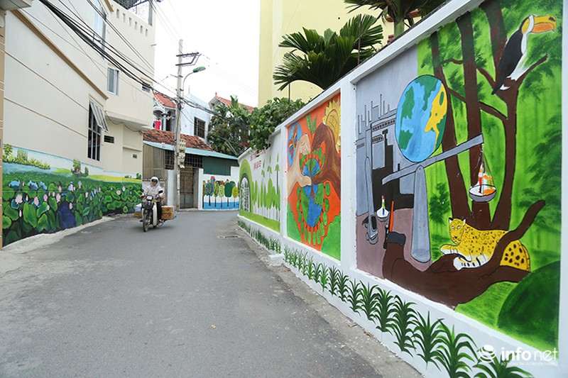 Con đường bích họa này kéo dài khoảng 200m trên tường của hơn 15 hộ gia đình. Nhiều người dân sính sống tại đây cho biết, trước đây, đoạn đường vốn là những bức tường ẩm mốc nhan nhản quảng cáo rao vặt.